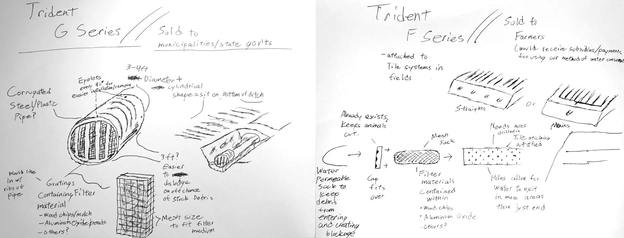 PRESENT: Ongoing prototype refinement + filter media testing for capturing / neutralizing nitrates & phosphates from runoff in drainage ditches,