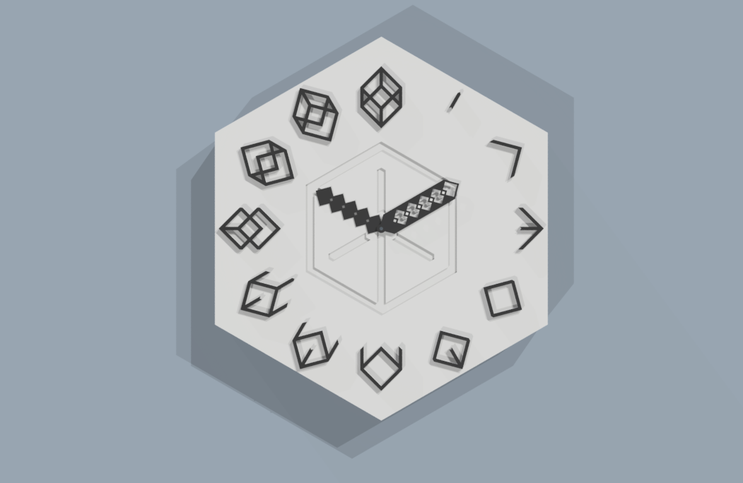 This project features iterative renderings of my work-in-progress clock, Time Cubed. Using the twelve edges that form a cube for the hours, Time Cubed is a three-dimensional designed object that embodies our movement through the dimension of time, the fourth dimension, through exaggerated two dimensional geometric iconography.